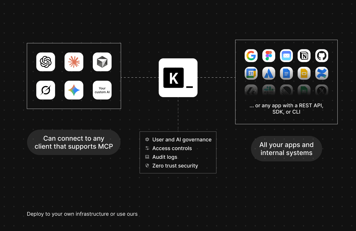 Connect the AI of your choice to every internal app through a single, secure MCP server.
